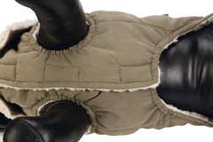 Resistente al agua | Suave piel de oveja en el interior | Fácil sujeción mediante un cierre de velcro | Cremallera, para sujetar a un collar o arnés | Lavable a 30 grados | Disponible en 2 colores y 6 tallas