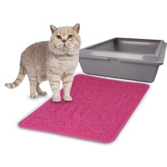 Mantén el espacio alrededor de la caja de arena limpia con esta linda alfombra rosa para gatos. ¡Evita que la arena de la caja de arena caiga al suelo y es fácil de limpiar! La parte inferior antideslizante asegura que la alfombra se mantenga en su lugar. Disponible en varios colores y diseños.