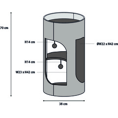 Material: felpa suave (267 g/m²) | Tonel rascador con alfombrilla rascadora de sisal | Plataforma de descanso y refugios acolchados | Con juguetes para que disfruten jugando | Medidas: L:37,5cm x An:37,5cm x Al:69,5cm