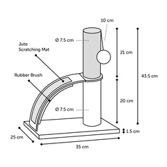 Material: felpa suave (200 g/m²) | Poste rascador con cuerda para rascador de yute (4 mm) | Grosor placa base: 1,5 cm y diámetro poste rascador: 7,5 cm | El revestimiento de goma proporciona a tu gato un maravilloso masaje | Con juguete con cascabel para gatos para que disfruten jugando