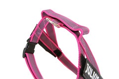 Ergonomía perfecta: permite ajustar la correa del pecho a las medidas exactas del perro y reparte la carga en el tórax en vez del cuello | Anilla en "D" de acero inoxidable para fijar la correa |Asa con cierre de gancho y bucle | Hebilla irrompible | Tipo de cierre: click de plástico | Superficie repelente al agua | Adhesivos laterales intercambiables con el texto JULIUS-K9® con opción de personalizarlos.