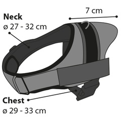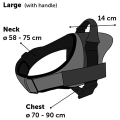 Material: nailon con relleno: esponja | De ajuste progresivo y con tiras reflectantes | XXXS - M: cierre de seguridad; XS - XL: correa ventral | La hebilla de clic y anilla tienen un acabado de metal gris oscuro brillante | Gran confort de uso gracias a su relleno suave y su malla transpirable | Con anilla para sujetar una correa | Puede acoplar el asa a cualquier arnés, excepto los de la XXXS a la S