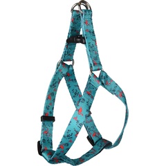 Haz que tu perro brille con el arnés para perros Samar verde con estampado de flamencos. Hecho de poliéster y ajustable con un práctico sistema de clics. Con 2 anillos en D para la correa y disponible en 3 tamaños. Completa el look con la correa a juego.