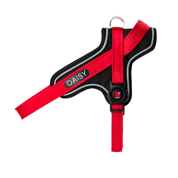 Con un diseño práctico y funcional, este arnés memopet ID personalizable rojo en forma de Y (noruego) es un accesorio esencial para usar en cualquier lugar, incluso bajo la lluvia o de noche.