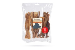 El cuero cabelludo de res es un gran snack natural para masticar, que es un regalo saludable y natural para el perro durante horas de placer de masticación. Incluso a los perros con un comportamiento de masticación pronunciado, el snacks ofrece un disfrute prolongado y una buena ocupación |Por cierto, limpian y fortalecen los dientes y las encías y proporcionan al perro proteínas y minerales valiosos. Por supuesto, no se agrega color ni aroma al cuero cabelludo bovino suavemente secado. También es sin gluten. Disponible en diferentes tamaños de envase.