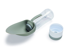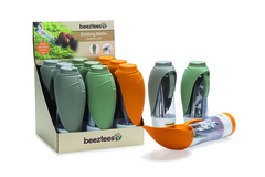 Con el biberón Nel de Beeztees siempre podrás llevar agua potable limpia para tu perro. Esta botella para beber para perros es multifuncional. Además de que la botella tiene un cuenco de agua integrado, se ha añadido un compartimento adicional en la parte inferior donde puedes guardar snacks para perros. Para dejar que tu perro beba, dobla la bandeja de silicona hacia arriba. Luego presione el botón redondo en la parte superior de la tapa y el agua fluirá hacia la hoja. ¿Tu perro ha terminado de beber? Drene el agua nuevamente en la botella para evitar desperdicios. Después de esto, presione el botón lateral para cerrar la botella nuevamente. Puede llenar fácilmente el recipiente para refrigerios desenroscándolo de la botella. Si quieres recompensar a tu perro mientras viajas, simplemente gira el botón en la parte inferior y saca algunos bocadillos.
