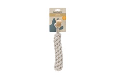 Hecho de algodón y madera de café - Con mango - Ideal para juegos de tira y afloja - La madera de café cuida tanto los dientes como las encías - Disponible en 3 tamaños. Medidas: - S: 5 x 5 x 24 cm - M: 5 x 5 x 34 cm - L: 5 x 5 x 42 cm