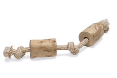 Hecho de algodón y madera de café - Ideal para juegos de tira y afloja - La madera de café cuida tanto los dientes como las encías - Disponible en 3 tamaños. Medidas: - S: 20 x 4 x 4 cm - M: 35 x 5,5 x 5,5 cm - L: 45 x 8,3 x 8,3 cm