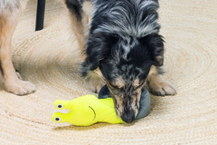 Juguete sin chirriador para un juego silencioso y con compartimentos secretos para esconder snacks. El diseño encantador y duradero asegura diversión y estimulación mental para tu peludo amigo. ¡Haz que cada momento de juego sea especial!