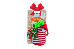 Beeztees Cat Toys Christmas Fun consta de nada menos que tres juguetes para gatos diferentes, fabricados con diferentes materiales. Esto permite que tu gato se entretenga con un juguete para gatos diferente cada vez. Deja que tu gato persiga la suave bola de lana, corra tras la espiral o acurrúcate con el adorable y suave calcetín navideño con cascabel. Disfruta jugando con estos divertidos juguetes navideños para gatos y crea una Navidad inolvidable juntos. - 3 juguetes - Diferentes materiales - Para horas de diversión
