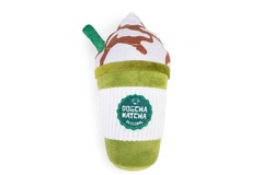 Fabricado en felpa suave |Juguete con forma de café con leche de matcha| Con papel de aluminio crujiente y chirriador |Para horas de diversión |Medidas: 24 x 11 x 11 cm