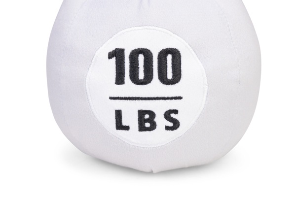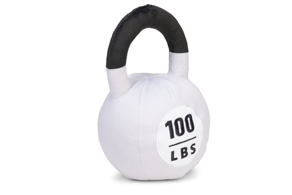 Fabricado en felpa suave| Juguete para perros con forma de kettlebell y asa |Tamaño fácil de coger |Con chirriador para mayor diversión Medidas: 20 x 12 x 14 cm