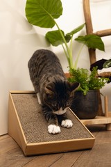 Satisface la necesidad natural de afilar las uñas de los gatos | Fabricado con cartón DDS reciclable hecho con materias primas renovables | Ecológico | 100% reciclable | Se puede utilizar por ambos lados | Los bordes elevados evitan que las fibras de cartón se extiendan | Calidad: FSC & DDS | Medidas: 49cm x 25cm x 24,5cm