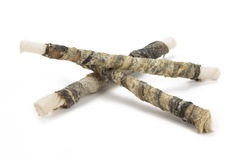 Palito de masticar gourmet | Piel de ternera envuelta en piel de bacalao | Producto natural para puro placer de masticar | Como un regalo o como una recompensa