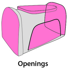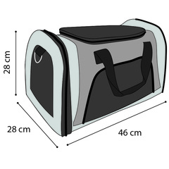 Material: poliéster con relleno: espuma para mantener la forma | Lavar a mano | Base extraíble | Cinturón con mosquetón para mayor seguridad | Correas de transporte y correa de hombro ajustable | Compartimento para objetos con cremallera |Dimensiones: 46cm L x 28cm An x 28cm Al |Peso Máximo 7kg