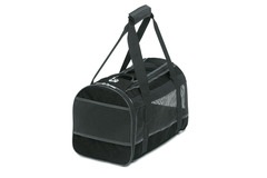 Bolsa de transporte para gatos y perros pequeños. Con identificación de animal y correa para el hombro | Se puede abrir tanto en la parte superior como en el lateral | Está cerrado con cremalleras | Inserciones de malla para una buena circulación de aire | Bolsillo lateral para accesorios y golosinas | Gancho de seguridad para sujetar el arnés . Estante robusto y extraíble | Cuidado fácil y lavable | En tres colores (negro, rojo, azul)