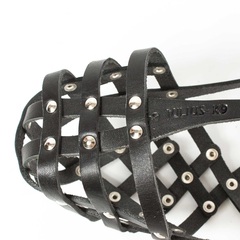 Los bozales de piel de Julius K9® están fabricados en cuero de calidad y muy resistente (4 mm de grosor) | Muy ligero, diseñado considerando las necesidades del perro | Indicado para perros de servicio, perros de trabajo y perros de trabajo | Disponible en 3 tamaños | Remaches resistentes | Correa en la frente | Malla gruesa.