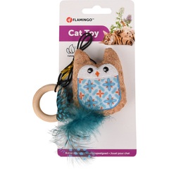 Material: textil y corcho | Con hierba gatera, plumas y anilla con goma elástica para que disfruten jugando