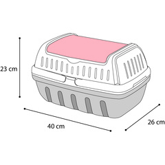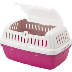 Material: plástico |Fácil de mover gracias a sus 2 asas |Hebilla de presión |Tapa de bisagra y desmontable con aberturas de ventilación |La parte superior facilita la colocación de su mascota en la jaula de transporte, reduciendo el riesgo de estrés