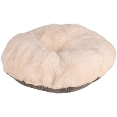 Material: textil y felpa con relleno: gomaespuma para mantener la forma | Peso felpa: 200 g/m² ; peso textil: 190 g/m² | Lavar a mano | Base antideslizante | El cojín extraíble es de doble cara con felpa y textil | El cojín extraíble es rellenado de fibra de poliéster | 2 en 1: la cesta se puede convertir en un lugar para dormir