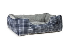 Cama para perros | Interior de felpa de suave | Patrón de cuadros azul y gris | Los bordes elevados invitan a la mascota a acurrucarse | Con entrada baja para ayudar a los perros pequeños, de patas cortas o mayores | Lavable a 30ºC | Medidas (LxAnxAl)