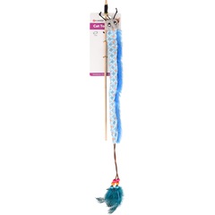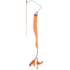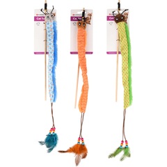 Material: caña de madera con juguete de textil | Estimula el instinto de caza de tu gato | Con crujido, cuentas, cintas y plumas que disfruten jugando