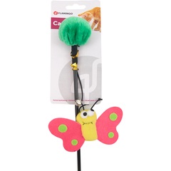 Material: caña de plástico con juguete de textil | Estimula el instinto de caza de tu gato | Con cascabel tintineante con goma elástica para que disfruten jugando