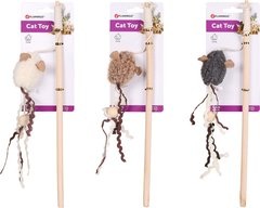 Material: caña de madera con juguete de peluche | Estimula el instinto de caza de tu gato | Con hierba gatera, cuentas y cintas para que disfruten jugando