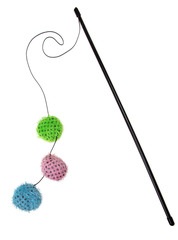 El juguete ideal para jugar rondas entre el dueño y el gato. Con tres bolas de juego en verde, rosa y azul con flecos. Con cascabel interior | Con hierba gatera