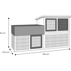 Material: madera | Resistente a la intemperie | 4 puertas con cierre de giratorio | Bandejas de plástico extraíbles para una limpieza rápida y sencilla | Autoensamblaje | Los pisos se pueden cerrar para hacer 2 corrales separados | Grosor horizontal, vertical y distancia entre los alambres: 3 / 2 / 24 mm