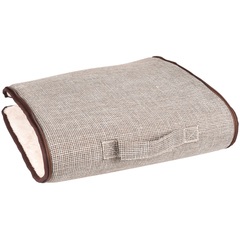 Material: textil y felpa con relleno: gomaespuma para mantener la forma | Peso felpa: 200 g/m² ; peso textil: 190 g/m² | Con cremallera y acabado con ribete | Lavar a mano | Base antideslizante y fácil de mover gracias a su asa | El cojín extraíble es de doble cara con felpa y textil | El cojín extraíble es rellenado de fibra de poliéster