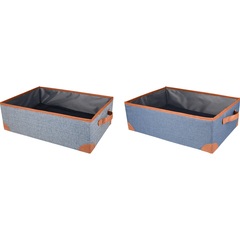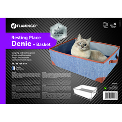 CESTA CON COJÍN FLAMINGO (50x35x16,5cm) - DENIE AZUL / BLANCO