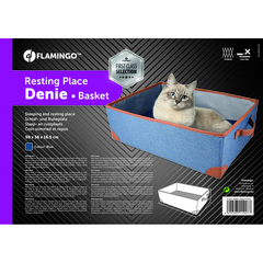 CESTA CON COJÍN FLAMINGO (50x35x16,5cm) - DENIE AZUL