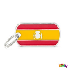 Chapa esmaltada a mano con opción de grabado en la cara posterior. Incluye la anilla para colgar en el collar o en un llavero. Medidas: 2,2cm x 4cm. Grosor: 2mm | Equivalencia códigos: MF52114 = FLESP01