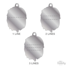 Chapa esmaltada a mano con opción de grabado en la cara posterior. Incluye la anilla para colgar en el collar o en un llavero. Medidas: 3,5cm x 2,7cm. Grosor: 2mm | Equivalencia códigos: MF59878 = MF90KOM