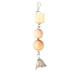 Ofrezca a las aves una variada actividad y entretenimiento. De madera y metal I Varios elementos de madera | Con campana | Con suspensión | Al: 27.5 cm