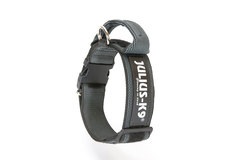 El collar Julius K9 Color&Gray® cuenta con un asa plegable, hebilla resistente y cierre de seguridad. Está compuesto por la combinación de un suave tejido de poliéster y nylon que asegura un ajuste óptimo y el cuidado de la piel. | Medidas: 40mm x 38-53cm