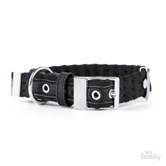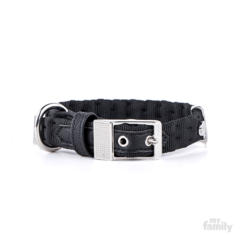 Collar fabricado en nylon de primera calidad con acabados en bronce blanco. Cuenta con una anilla en "D" para facilitar el anclaje a la correa y un porta placas para colgar la chapa identificativa. | Equivalencia con códigos MyFamily: (XXS) 1127 (XS) 1128 (S) 1121 (SM) 1122 (M) 1123 (ML) 1124 (L) 1125 (XL) 1126 (XXL) 1129 (XXXL) 1139.