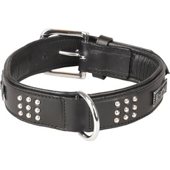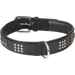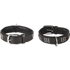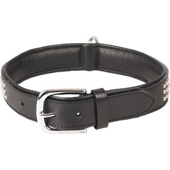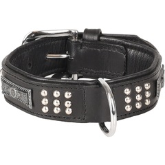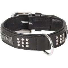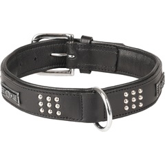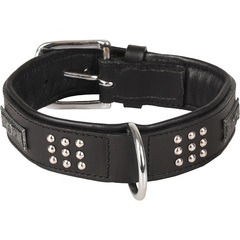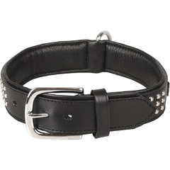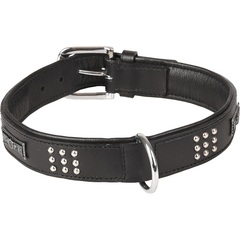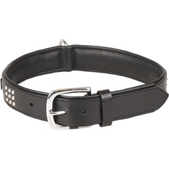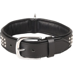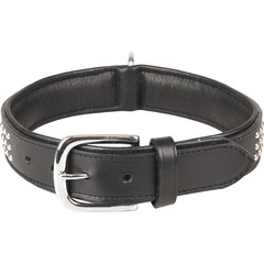 Nuestra collar para perros está hecho de cuero genuino y tiene hermosos detalles plateados. El collar es de alta calidad y tiene un cierre resistente. Gracias al anillo en D, el collar es fácil de sujetar a la correa. Disponible en diferentes tamaños y colores.