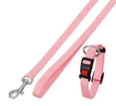 Collar y correa. Collar continuamente ajustable, con alivio de tensión. Con juguetes para cachorros. Material de nylon estable. Correa 15 mm x 120 cm. accesorios cromados .