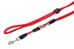 Las correas de entrenamiento de material redondo hechas de nylon y cuero sintético son robustas y rresistentes a la intemperie. Las correas con accesorios cromados son multi-ajustables y están disponibles en los colores rojo y negro.