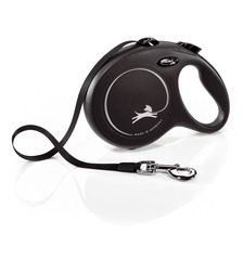 La correa retráctil New Classic con cinta de Flexi es de uso sencillo y tiene un deslizamiento óptimo | Sistema de frenado de carrera corta | Disponible en 4 colores y en 5 tamaños | Se puede personalizar con el Sistema de Iluminación Led y/o la Caja Multiusos de Flexi | XS: 3m adecuada para perros de hasta 12kg - S: 5m adecuada para perros de hasta 15kg - M: 5m adecuada para perros de hasta 25kg - L: 5m adecuada para perros de hasta 50kg - L+: 8m adecuada para perros de hasta 50kg