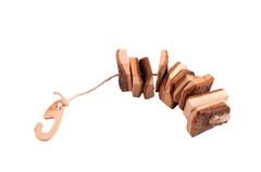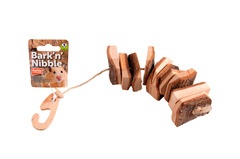 Madera de roer en cuerda | Producto natural | Apoya el cuidado dental | Con gancho de madera para colgar | Actividad útil para roedores | Longitud del borde de piezas individuales de madera: aprox.5 cm.
