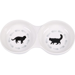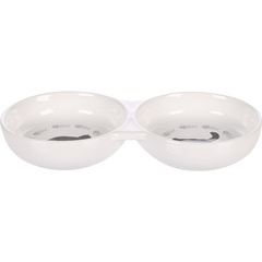 Material: cerámica esmaltada | Combo: 2 cuencos fijos para la comida y el agua en 1 soporte | Apto para lavavajillas