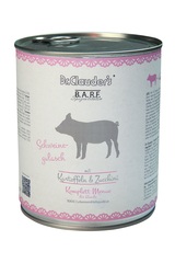Alimento completo para perros adultos. | Ingredientes: 80% de cerdo (corazón, carne, hígado, pulmón), 5% zanahorias, 5% patata, 5% calabacín, 3% mandioca, 1% minerales, 0,5% aceite de hígado de bacalao, 0,5% aceite de germen de trigo. | Componentes analíticos: Proteína bruta 10,2%, grasa bruta 6,2%, Cenizas brutas 2%, fibra bruta 0,6%, humedad 77%. | Aditivos/kg: Aditivos nutricionales: : A 5.000IU, D3 500IU, E 11,7mg.