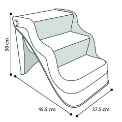 Material: plástico | Antideslizante en los escalones | Apto para perros de hasta 50 kg | Ayuda plegable con 3 peldaños para levantarse y ascender | Plegable con sistema de bloqueo en la parte posterior | 38CM L X 45CM AN X 38CM AL