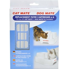 Contiene 6 filtros de recambio de polímero de carbono para uso en las fuentes para mascotas Cat Mate (335), Cat Mate Shell (410, 411, 412, 413) y fuente grande Dog Mate (385).