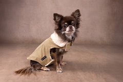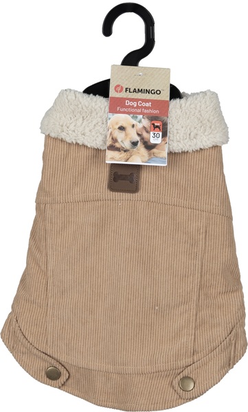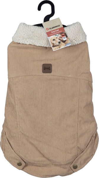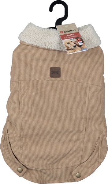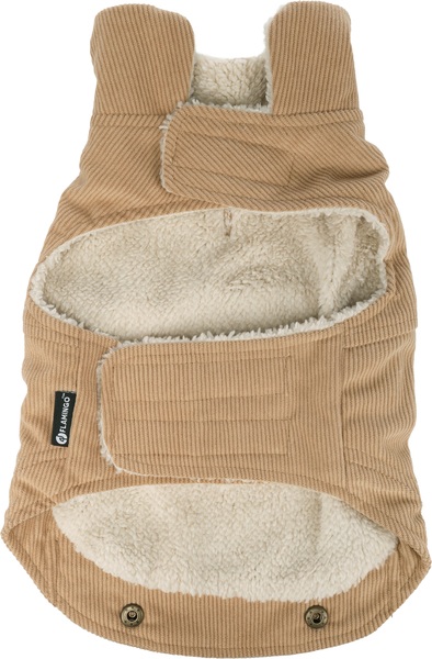 Mantén a tu amigo peludo calentito y con estilo con esta chaqueta beige Endor. Hecha de poliéster suave y terminada con peluche para mayor comodidad. Con práctico velcro y una abertura para el collar. ¡Tu mascota será la estrella de la calle!