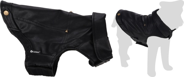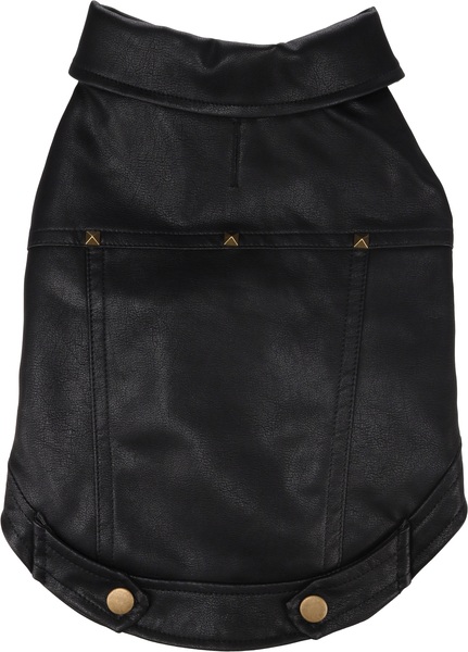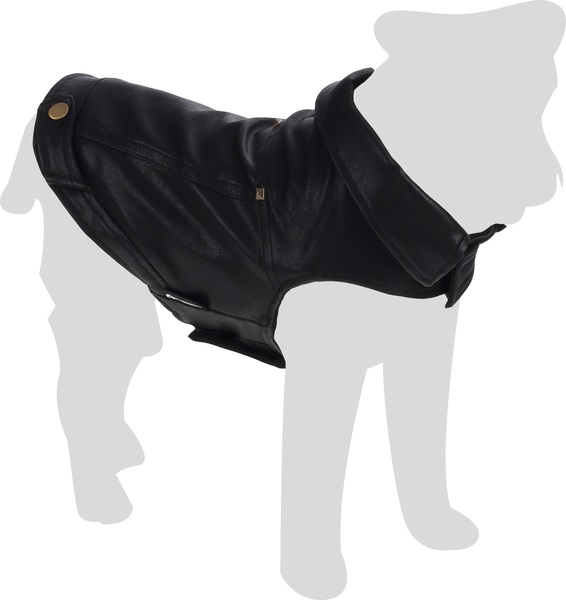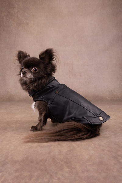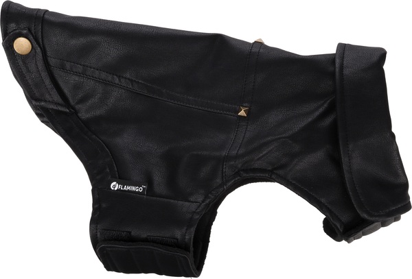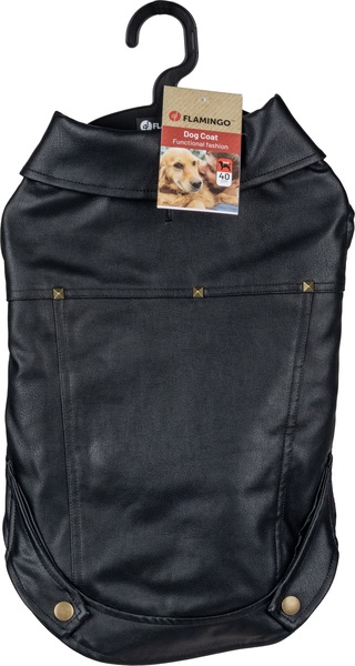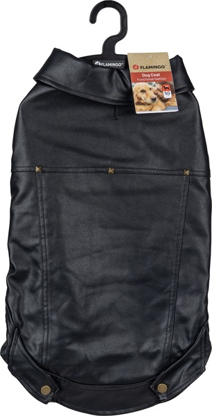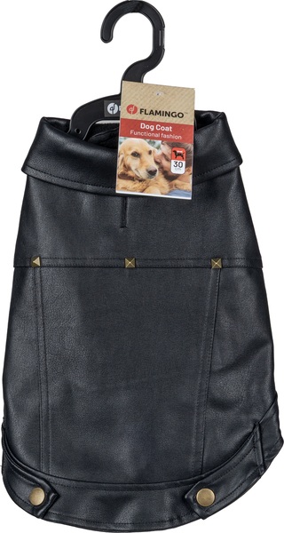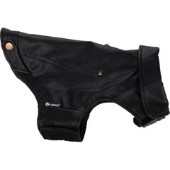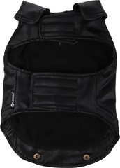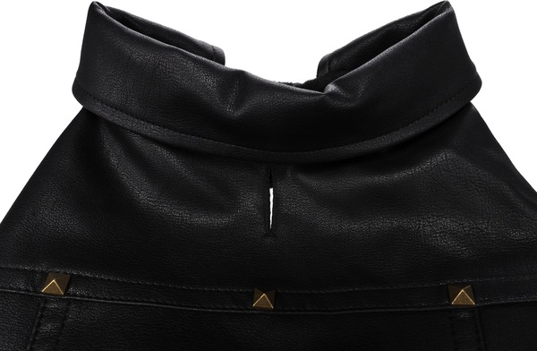 Material: cuero artificial|Lavable a 30°C|Cierre de gancho y bucle en el vientre y el cuello|A prueba de salpicaduras|Acabado con forro polar suave en el interior|Decorado con remaches|Con abertura para el colla