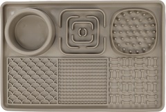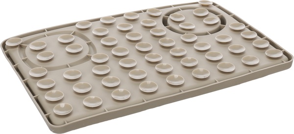 Material: silicona|Con ventosas para fijarla al suelo|También apto para cachorros y gatitos|Puede utilizarse con comida húmeda y pasta untable en combinación con snacks|Apto para el lavavajillas y se puede meter en el congelador hasta menos 20 °C|Una alfombrilla para lamer evita que el perro engulla la comida|2 en 1: alfombrilla para lamer y comedero|Medidas: 30,5x20,5CM